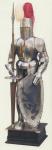 Add some medieval artistic beauty to any place with this suit! Each part of the armor is fully articulated and is designed to the greatest attention to detail. This knight armor features a powerful and majestic design enhanced with a exclusive Lion Shield and Jousting Lance! It is adorned with a cross and three fleur-de-lys etched on the chest and characterized by a panoplia fit for tournaments. Two ostrich plumes insert into the helmet to complete this impressive piece. This suit of armor is full size and features traditional contruction to ensure authenticity and historical accuracy.